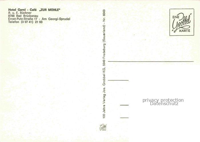 74087452 Bad Brueckenau Bayern Hotel Garni Cafe Zur Muehle postalisch nicht gelaufen Erhaltung siehe scans [WerneD78] KatCode: 11110009672113