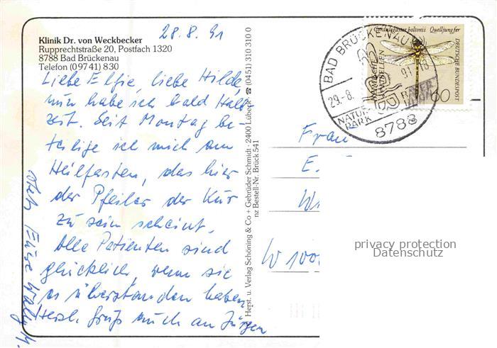 74142114 Bad Brueckenau Bayern Klinik Dr. von Weckbecker Hallenbad Aufenthaltsraum postalisch gelaufen Erhaltung siehe scans [FriedD77] alte Postkarte Frie Katcode 11110009672113