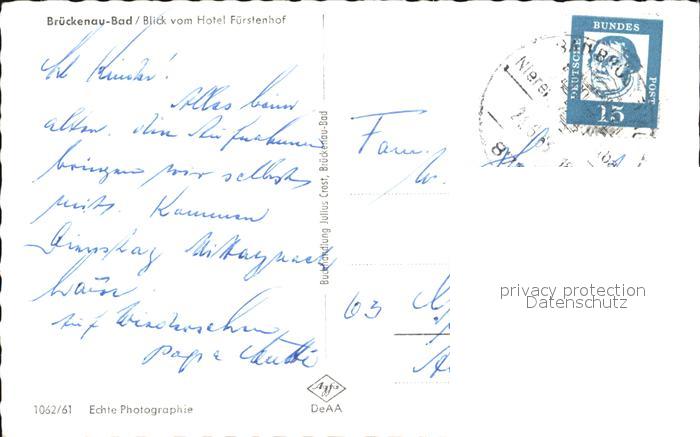 72428584 alte Postkarte Bad Brueckenau Blick vom Hotel F?rstenhof postalisch gelaufen Erhaltung siehe scans KatCode: 11110009672113