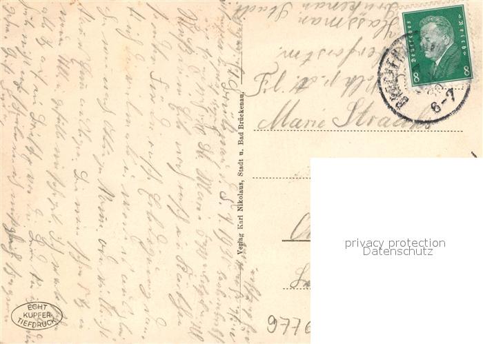 72967678 alte Postkarte Bad Brueckenau Blick vom Schlosshotel postalisch gelaufen Erhaltung siehe scans [NatalD47] KatCode: 11110009672113
