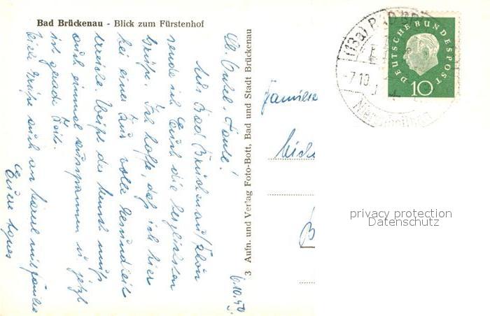 43349800 alte Postkarte Bad Brueckenau Blick zum Fuerstenhof postalisch gelaufen Erhaltung siehe scans [FriedD77] KatCode: 11110009672113