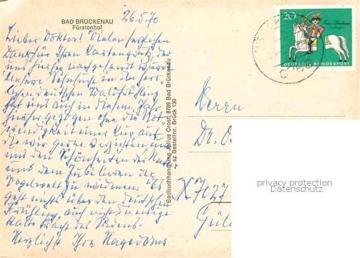 73009193 alte Postkarte Bad Brueckenau Fuerstenhof postalisch gelaufen Erhaltung siehe scans [WerneD78] KatCode: 11110009672113