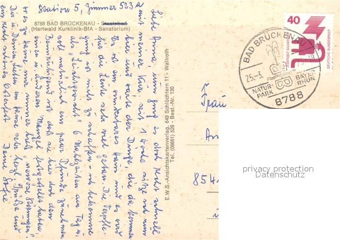 73040857 alte Postkarte Bad Brueckenau Hartwald Kurklinik BfA Sanatorium postalisch gelaufen Erhaltung siehe scans [FriedD77] KatCode: 11110009672113