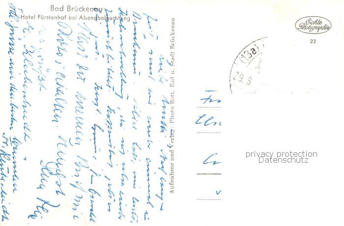 73773123 alte Postkarte Bad Brueckenau Hotel Fuerstenhof bei Abendbeleuchtung postalisch gelaufen Erhaltung siehe scans [FriedD77] KatCode: 11110009672113
