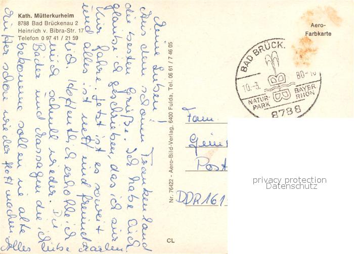 73652384 alte Postkarte Bad Brueckenau Kath Muetterkurheim postalisch gelaufen Erhaltung siehe scans [WerneD78] KatCode: 11110009672113