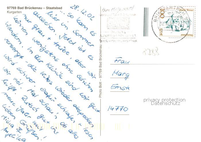 73842282 alte Postkarte Bad Brueckenau Kurgarten postalisch gelaufen Erhaltung siehe scans [WerneD78] KatCode: 11110009672113