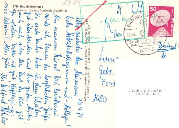 72898069 alte Postkarte Bad Brueckenau Marienkirche und Hartwald Klinik Fliegeraufnahme postalisch gelaufen Erhaltung siehe scans [FriedD77] KatCode: 11110009672113