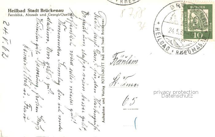 73671764 alte Postkarte Bad Brueckenau Panorama Heilbad Fernblick Altstadt und Georgi Quelle postalisch gelaufen Erhaltung siehe scans [FriedD77] KatCode: 11110009672113