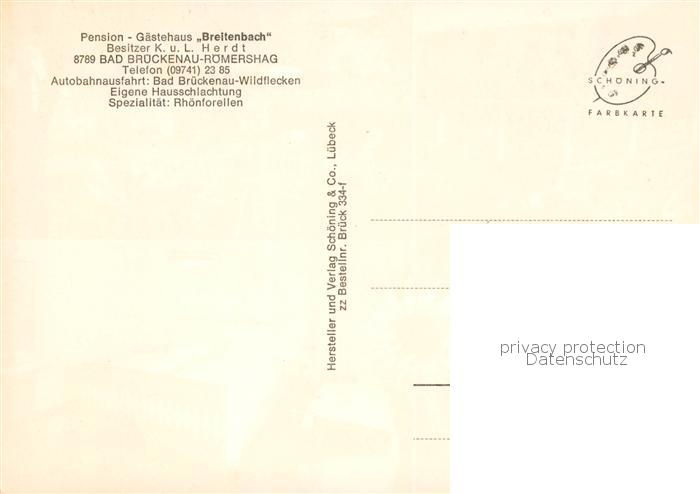 73862851 Bad Brueckenau Pension Gaestehaus Breitenbach Roemershag Garten Zimmer postalisch nicht gelaufen Erhaltung siehe scans [WerneD78] KatCode: 11110009672113