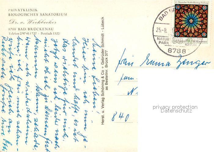 73076994 alte Postkarte Bad Brueckenau Privatklinik Biologisches Sanatorium Weckbecker postalisch gelaufen Erhaltung siehe scans [KathaD81] KatCode: 11110009672113