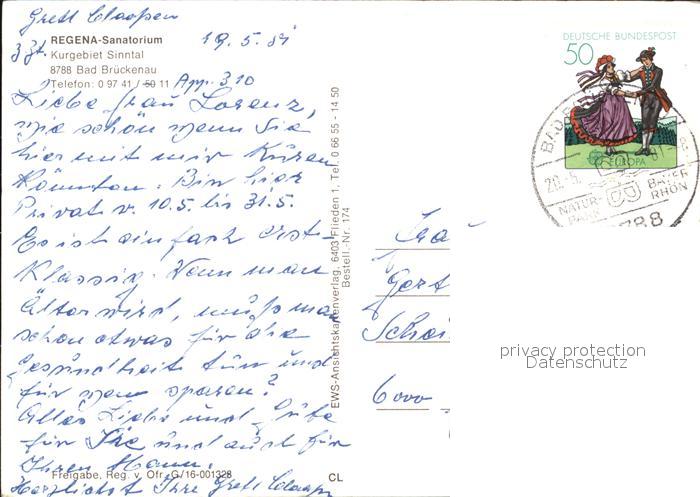 72570715 alte Postkarte Bad Brueckenau Regena-Sanatorium Fliegeraufnahme postalisch gelaufen Erhaltung siehe scans [AndreD76] KatCode: 11110009672113