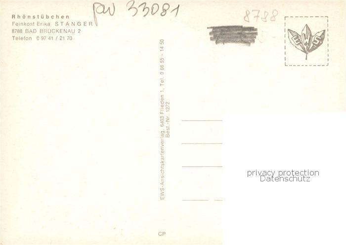73842244 Bad Brueckenau Rhoenstuebchen postalisch nicht gelaufen Erhaltung siehe scans [WerneD78] KatCode: 11110009672113