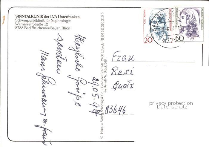 72538668 alte Postkarte Bad Brueckenau Sinntalklinik Aussenansicht Kurpark Treppenhaus Speisesaal postalisch gelaufen Erhaltung siehe scans [AndreD76 kt119box] KatCode: 11110009672113