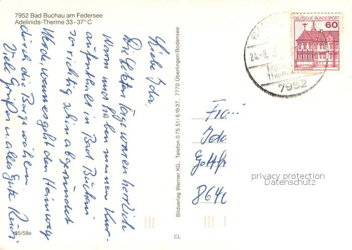 73686084 alte Postkarte Bad Buchau Federsee Adelinids Therme postalisch gelaufen Erhaltung siehe scans [WerneD78] KatCode: 11110008426013