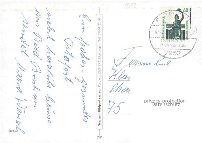 74052816 alte Postkarte Bad Buchau Federsee Biberach BW Adelindis Therme Parkanlagen Moorheilbad postalisch gelaufen Erhaltung siehe scans [FriedD77] KatCode: 11110008426013
