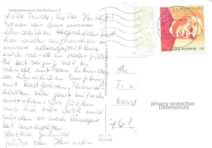 74052624 alte Postkarte Bad Buchau Federsee Biberach BW Federseemuseum postalisch gelaufen Erhaltung siehe scans [FriedD77] KatCode: 11110008426013