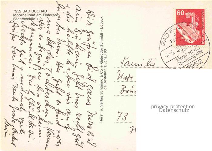 74052817 alte Postkarte Bad Buchau Federsee Biberach BW Moorheilbad Federseeklinik Wasserspiele postalisch gelaufen Erhaltung siehe scans [FriedD77] KatCode: 11110008426013