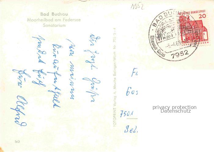 74052818 alte Postkarte Bad Buchau Federsee Biberach BW Moorheilbad Sanatorium postalisch gelaufen Erhaltung siehe scans [FriedD77] KatCode: 11110008426013