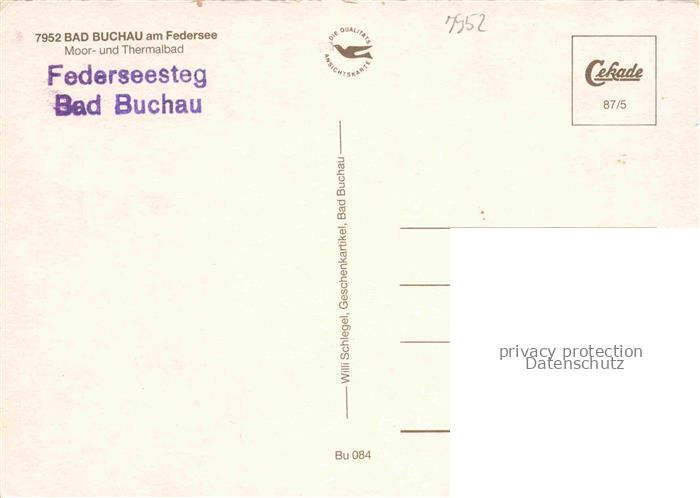 74052615 Bad Buchau Federsee Biberach BW Panorama Luftaufnahme Federseesteg Adelindis-Therme Dampflokomotive Kurzentrum postalisch nicht gelaufen Erhaltung siehe scans [FriedD77] KatCode: 11110008426013