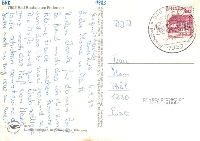 73101523 alte Postkarte Bad Buchau Federsee Fliegeraufnahme postalisch gelaufen Erhaltung siehe scans [WerneD78] KatCode: 11110008426013