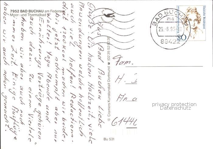 alte Postkarte Bad Buchau Federsee Fliegeraufnahme Kurpark Federsee Thermalbad Federseemuseum Tretbecken postalisch gelaufen Erhaltung siehe scans