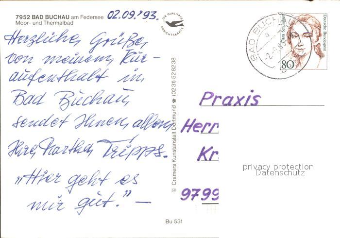 72556542 alte Postkarte Bad Buchau Federsee Kurpark Tretbecken Federseemuseum postalisch gelaufen Erhaltung siehe scans [KathaD79] KatCode: 11110008426013