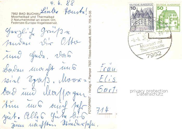 72897048 alte Postkarte Bad Buchau Federsee Moorbad Thermalbad Europa Vogelreservat postalisch gelaufen Erhaltung siehe scans [KathaD81] KatCode: 11110008426013