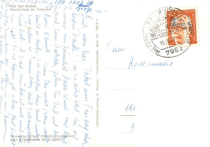 73895796 alte Postkarte Bad Buchau Federsee Moorheilbad am Federsee Fliegeraufnahme postalisch gelaufen Erhaltung siehe scans [FriedD77] KatCode: 11110008426013