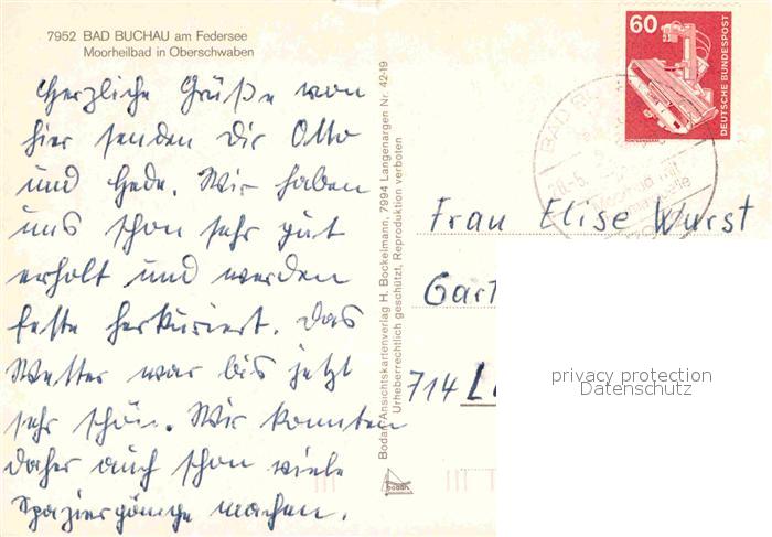 72897054 alte Postkarte Bad Buchau Federsee Moorheilbad Kurklinik postalisch gelaufen Erhaltung siehe scans [KathaD81] KatCode: 11110008426013