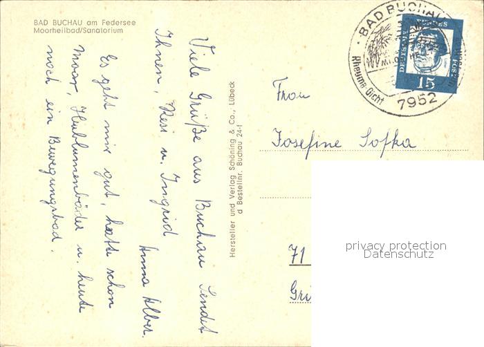 72492060 alte Postkarte Bad Buchau Federsee Sanatorium postalisch gelaufen Erhaltung siehe scans KatCode: 11110008426013
