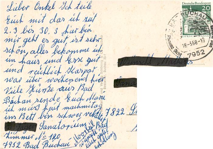 73885956 alte Postkarte Bad Buchau Federsee Sanatorium Speisesaal Park Hallenbad Gastraum postalisch gelaufen Erhaltung siehe scans [WerneD78] KatCode: 11110008426013