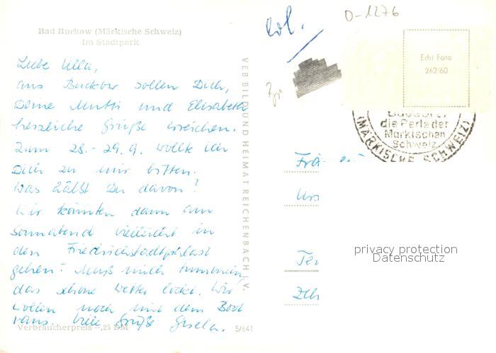 73044985 alte Postkarte Bad Buckow Maerkische Schweiz Stadtpark postalisch gelaufen Erhaltung siehe scans [WerneD78] KatCode: 11110012064084