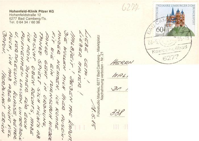 73936111 alte Postkarte Bad Camberg Fliegeraufnahme Hohenfeld Klinik Empfang Patientenzimmer Speiseraum Schwimmbad Ansicht postalisch gelaufen Erhaltung siehe scans [WerneD78] KatCode: 11110006533003