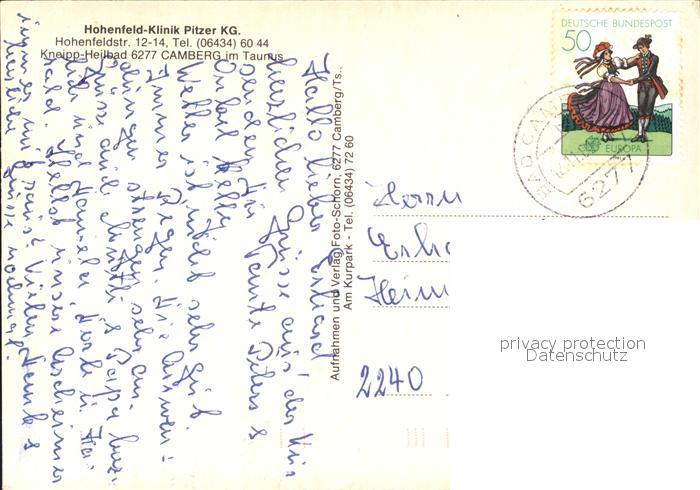 71948553 alte Postkarte Bad Camberg Hohenfeld Klinik Pitzer KG Kneippbad Hallenbad postalisch gelaufen Erhaltung siehe scans KatCode: 11110006533003