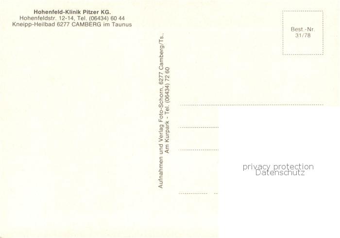73763054 Bad Camberg Hohenfeld Klinik Pitzer KG Kurklinik Kneipp-Heilbad postalisch nicht gelaufen Erhaltung siehe scans [FriedD77] KatCode: 11110006533003