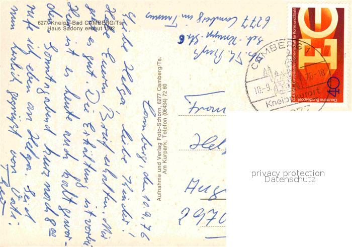 72863706 alte Postkarte Bad Camberg Kneippbad Haus Sadony 16. Jhdt. Historisches Gebaeude Fachwerkhaus postalisch gelaufen Erhaltung siehe scans [FriedD77] KatCode: 11110006533003