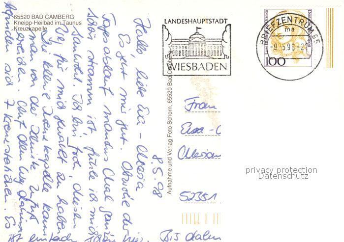 73270788 alte Postkarte Bad Camberg Kreuzkapelle postalisch gelaufen Erhaltung siehe scans [KathaD81] KatCode: 11110006533003