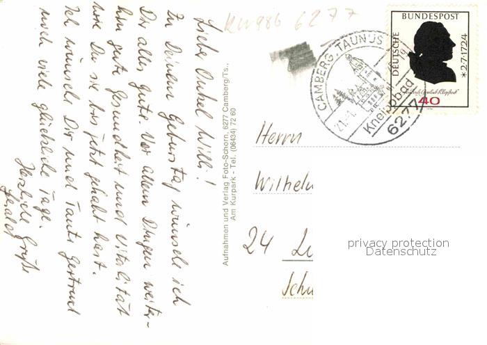 72859943 alte Postkarte Bad Camberg Kurklinik Pitzer KG postalisch gelaufen Erhaltung siehe scans [LiesaD40] KatCode: 11110006533003