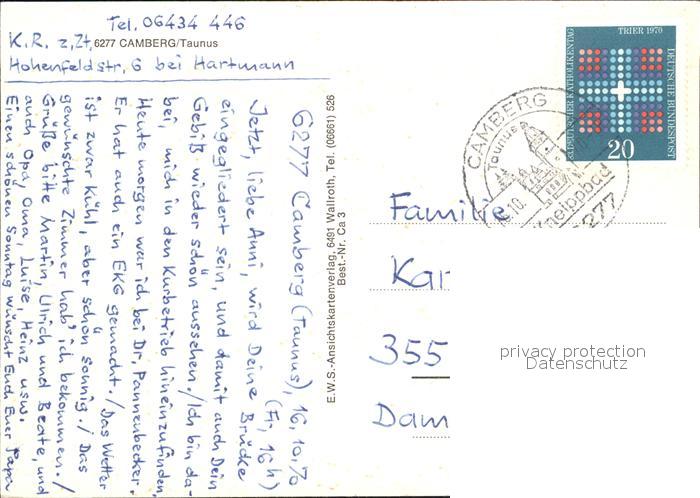 72582783 alte Postkarte Bad Camberg Marktplatz Obertor Untertor Minigolf postalisch gelaufen Erhaltung siehe scans [LiesaD40] KatCode: 11110006533003