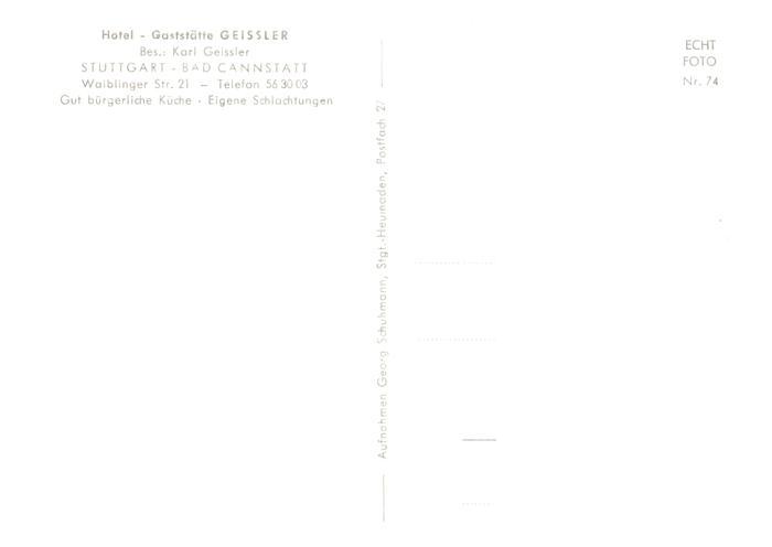 73868458 Bad Cannstatt Hotel Gaststaette Geissler postalisch nicht gelaufen Erhaltung siehe scans [FriedD77] KatCode: 11110008111000