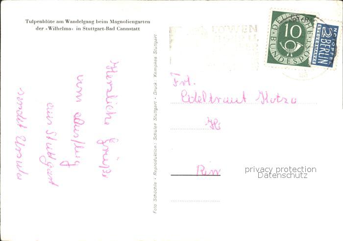 72425739 alte Postkarte Bad Cannstatt Tulpenbluete am Wandelgang der Wilhelma postalisch gelaufen Erhaltung siehe scans KatCode: 11110008111000