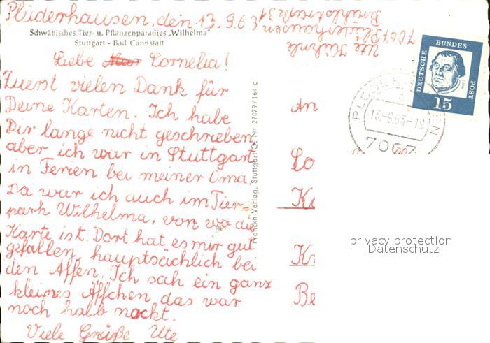 72366772 alte Postkarte Bad Cannstatt Wilhelma Tiger Zebra Affen Elefanten Seehund Pinguin postalisch gelaufen Erhaltung siehe scans KatCode: 11110008111000