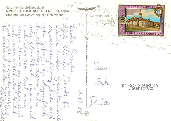 72925416 alte Postkarte Bad Deutsch-Altenburg Kurort im March Donauland Fliegeraufnahme postalisch gelaufen Erhaltung siehe scans [FriedD77] KatCode: 11390127030702