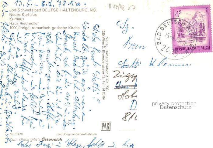 73313165 alte Postkarte Bad Deutsch-Altenburg Neues Kurhaus Haus Riedmueller Kirche postalisch gelaufen Erhaltung siehe scans [NatalD47] KatCode: 11390127030702