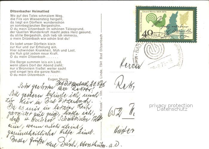 71989131 alte Postkarte Bad Ditzenbach Ditzenbacher Heimatlied postalisch gelaufen Erhaltung siehe scans KatCode: 11110008117006