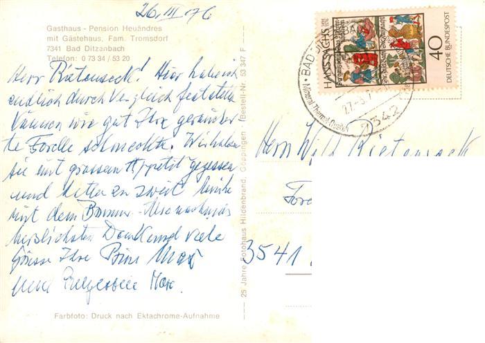 73881376 alte Postkarte Bad Ditzenbach Gasthaus Pension Heuandres postalisch gelaufen Erhaltung siehe scans [FriedD77] KatCode: 11110008117006