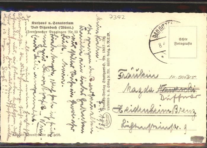 71340298 alte Postkarte Bad Ditzenbach Kurhaus und Sanatorium Fliegeraufnahme postalisch gelaufen gute Erhaltung KatCode: 11110008117006