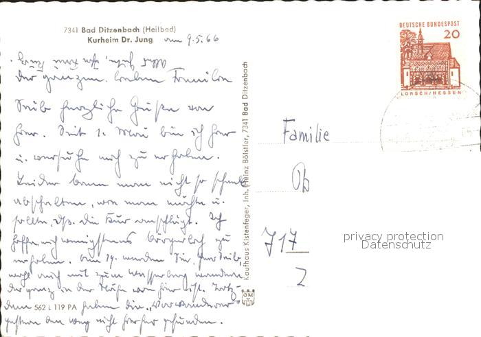71930996 alte Postkarte Bad Ditzenbach Kurheim Dr JUng postalisch gelaufen Erhaltung siehe scans KatCode: 11110008117006