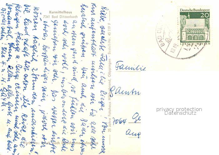 72780841 alte Postkarte Bad Ditzenbach Kurmittelhaus postalisch gelaufen Erhaltung siehe scans [FriedD77] KatCode: 11110008117006