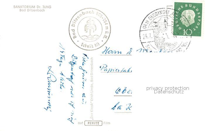 73830191 alte Postkarte Bad Ditzenbach Sanatorium Dr Jung postalisch gelaufen Erhaltung siehe scans [FriedD77] KatCode: 11110008117006